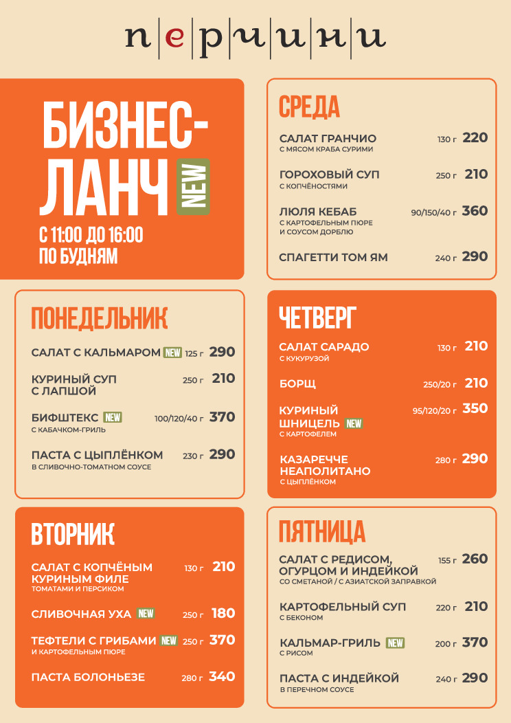 Перчини ТРК «LETOUT», Московское шоссе, 18км, 25а / Бизнес-ланч